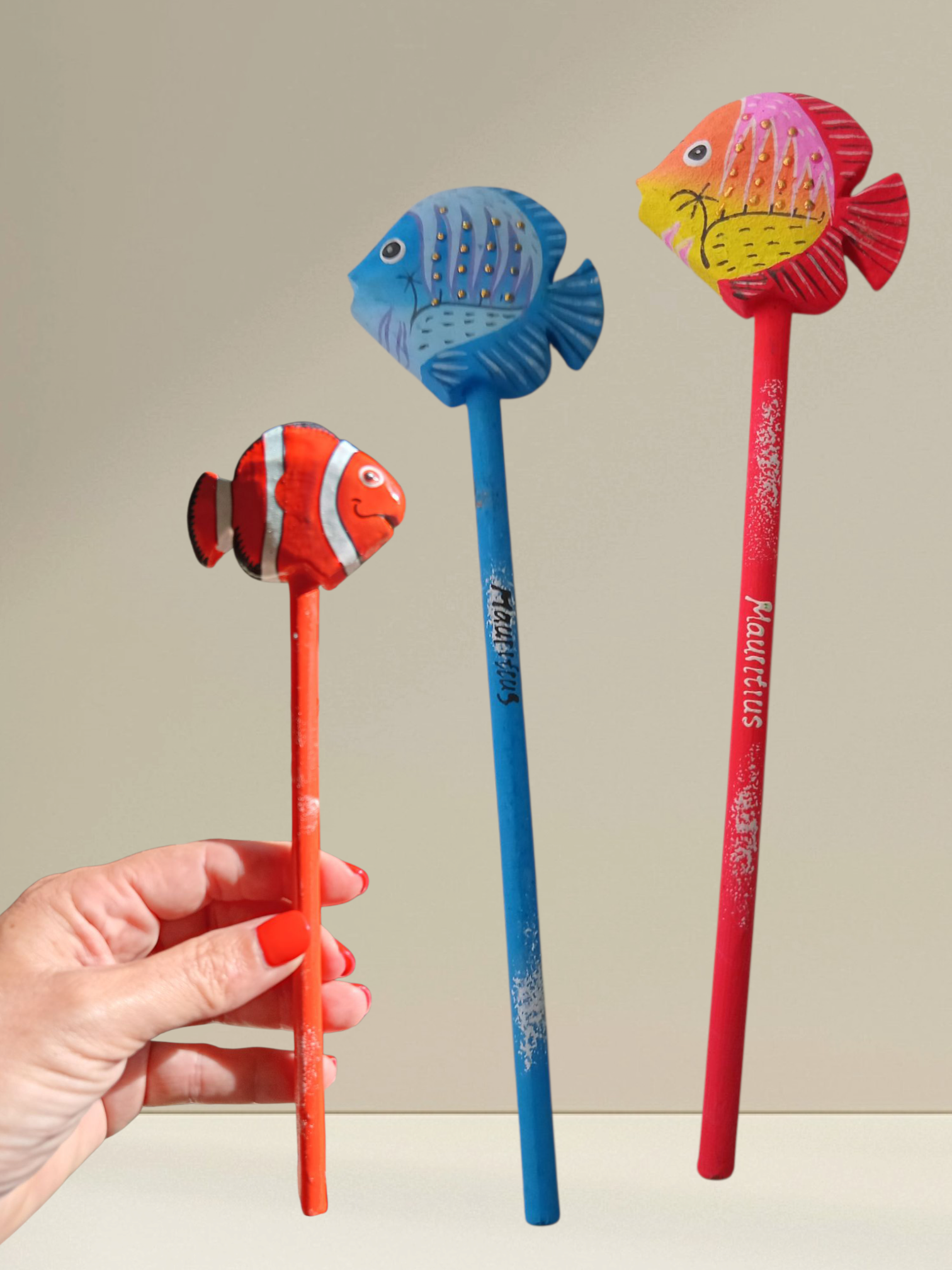 Each pencil is decorated with a beautiful tropical fish motif, representing the vibrant underwater life of the Indian Ocean. It’s the perfect gift to inspire creativity and brighten up homework or drawing.